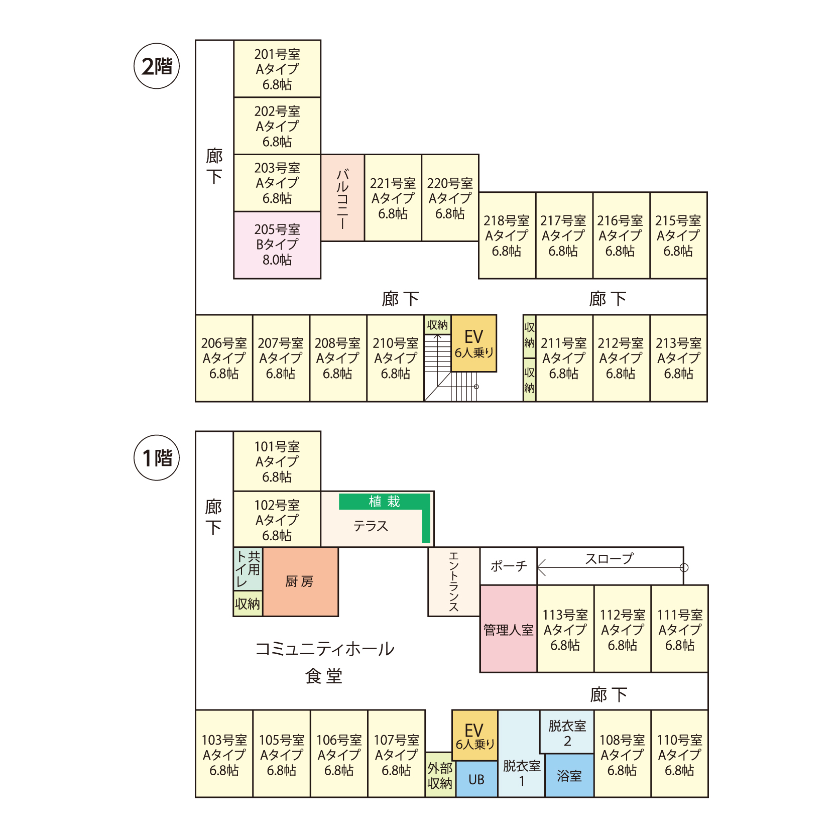 ・個室設備:トイレ・洗面台・防火カーテン・エアコン・スプリンクラー・照明