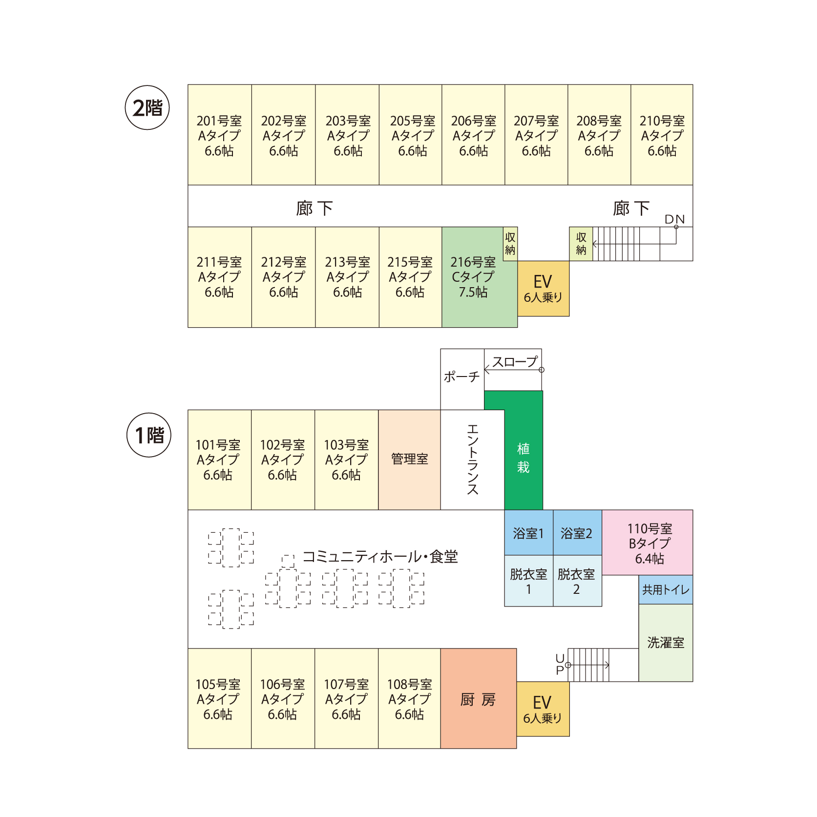 ・共有設備:コミュニティーホール・食堂(ダイニング)・浴室バスリフト付き(車椅子対応)・洗濯機・エレベーター