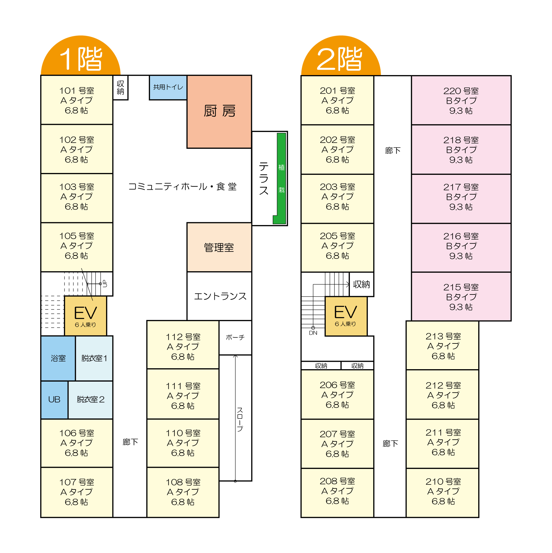 ・個室設備:トイレ(間切り無し)・洗面台・防火カーテン・エアコン・スプリンクラー・照明器具