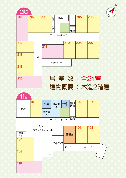 ◆共有設備:コミュニティホール・食堂(ダイニング)・洗濯機・エレベーター・浴室(ユニットバス)・バスリフト付き(車椅子対応)