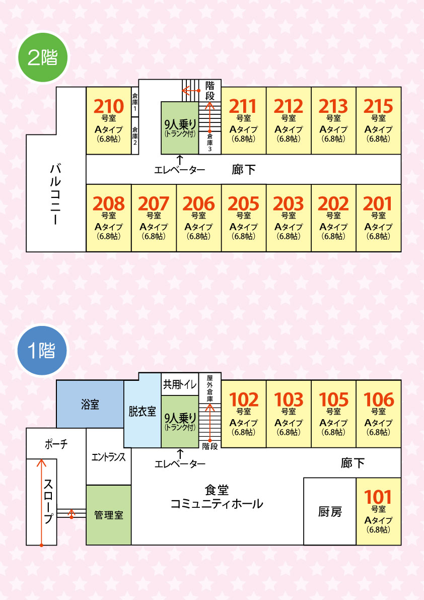 ◆個室設備:トイレ(間仕切り無し)・エアコン・洗面台・防火カーテン・スプリンクラー・照明器具