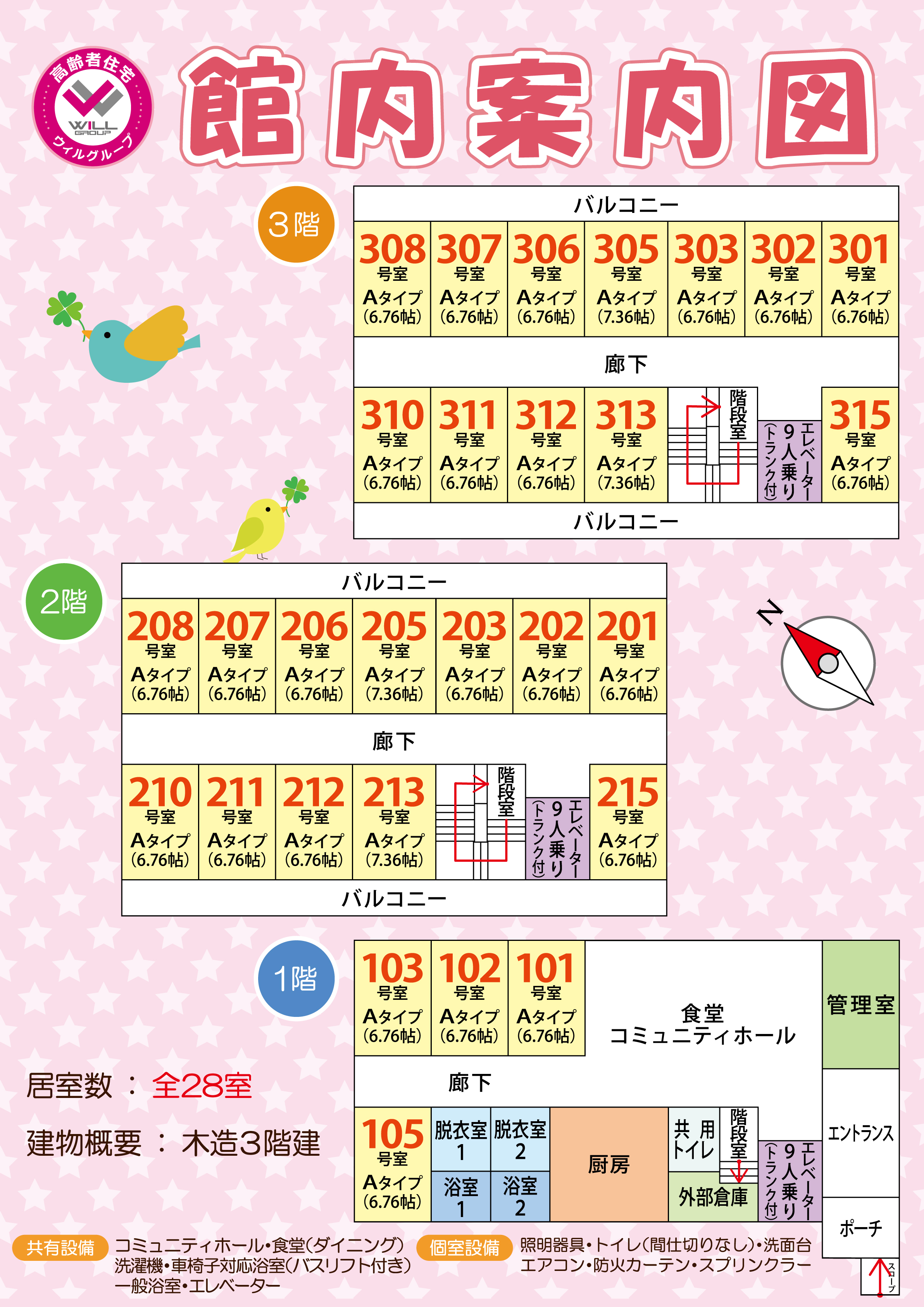 ◆共有設備:コミュニティホール・食堂(ダイニング)・洗濯機・エレベーター・浴室(ユニットバス)・車椅子対応浴室(バスリフト付き)